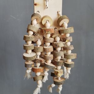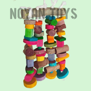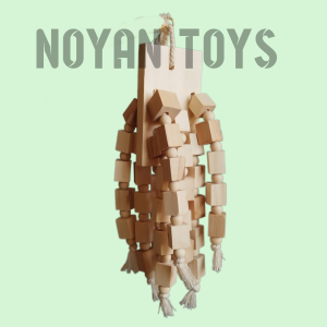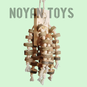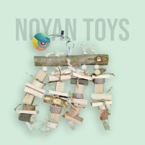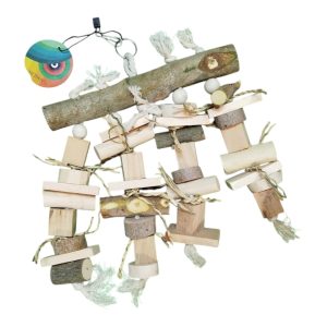 این اسباب‌بازی آویز چوبی مخصوص پرندگان بزرگ‌جثه از چوب‌های طبیعی و مقاوم ساخته شده. طراحی ساده و ایمن آن باعث می‌شود که انتخابی ایده‌آل برای پرندگان حساس و فعال باشد.